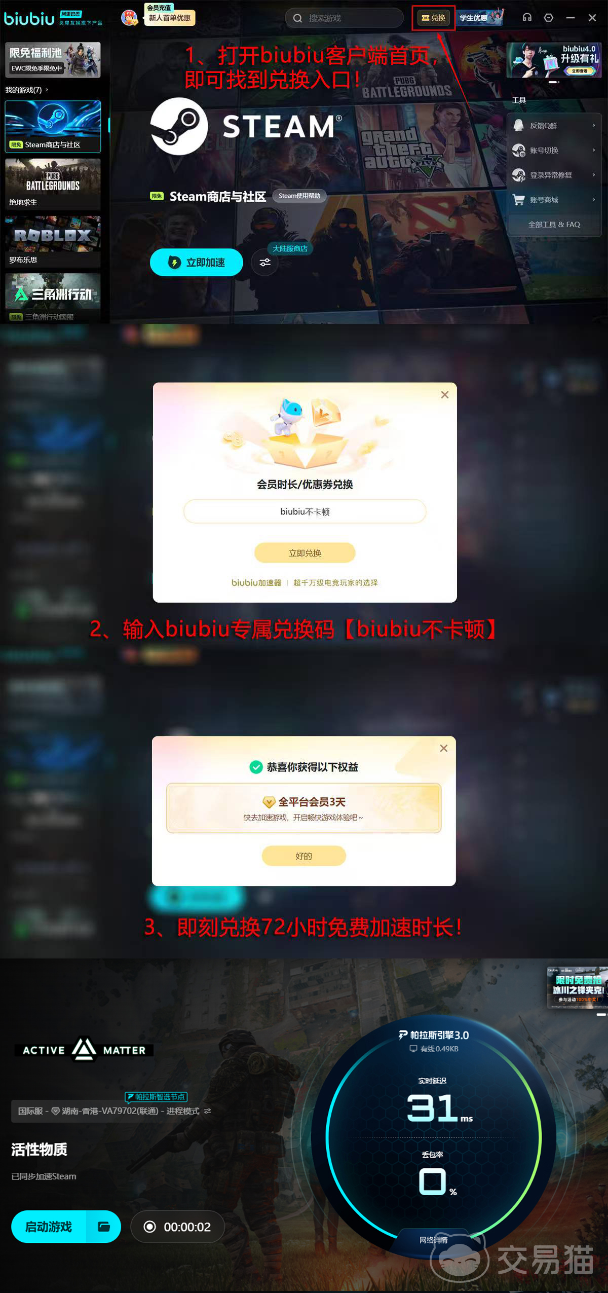 为进一步提升用户体验,开发团队特邀冠军选手Aixleft参与网络交互测试与反馈优化,显著增强了实际操作中的响应效率。目前该服务提供新用户福利政策:注册即可获得24小时免费使用时长,另可通过输入指定口令在客户端首页额外领取72小时体验权限,两项叠加最高可达96小时免费试用期。