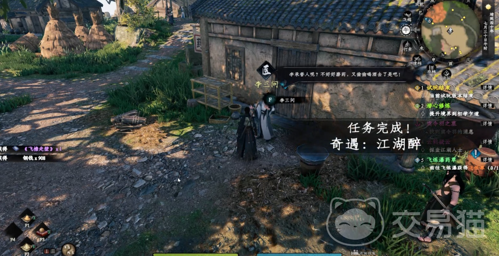 此外,在围绕李三问展开的任务链中,还包含丹士身份的解锁环节。要激活炼丹职业身份,必须前往李三问所在地点完成特定条件。炼丹所需的材料中,有10种可在商店直接购买,其余则需通过任务奖励获取。在整个任务过程中,玩家需依据系统提示前往多个地图区域进行探索与挑战,各环节紧密相连,合理使用道具有助于应对突发危机。