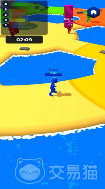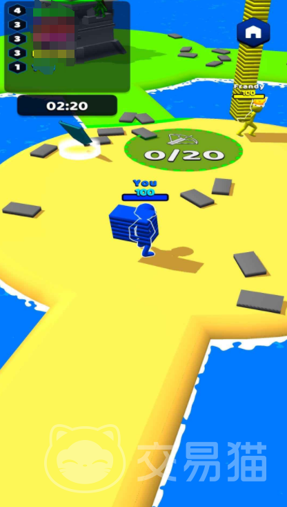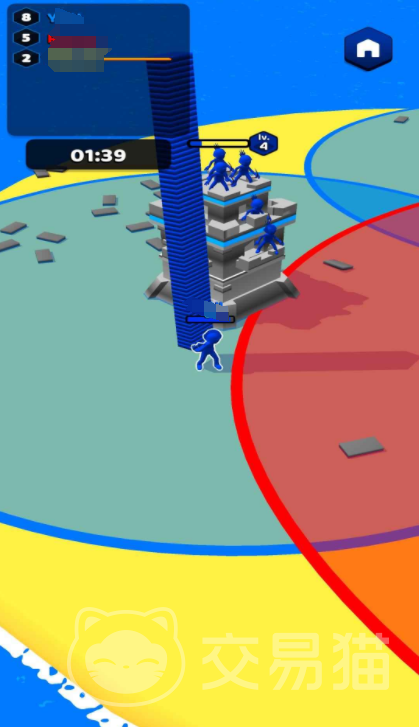 在《数字搬砖》的世界里,每位玩家可以自由选择一种代表自己的颜色,并操控对应颜色的火柴人角色进行移动与操作。游戏地图中分布着大量可拾取的砖块,靠近即可自动拾取,随后用于建造属于自己的基地城堡。值得注意的是,可用于建设的空间区域有限,每次升级基地后,周围会生成对应颜色的势力范围圈,若被其他颜色覆盖,则原有建筑将归对方所有。