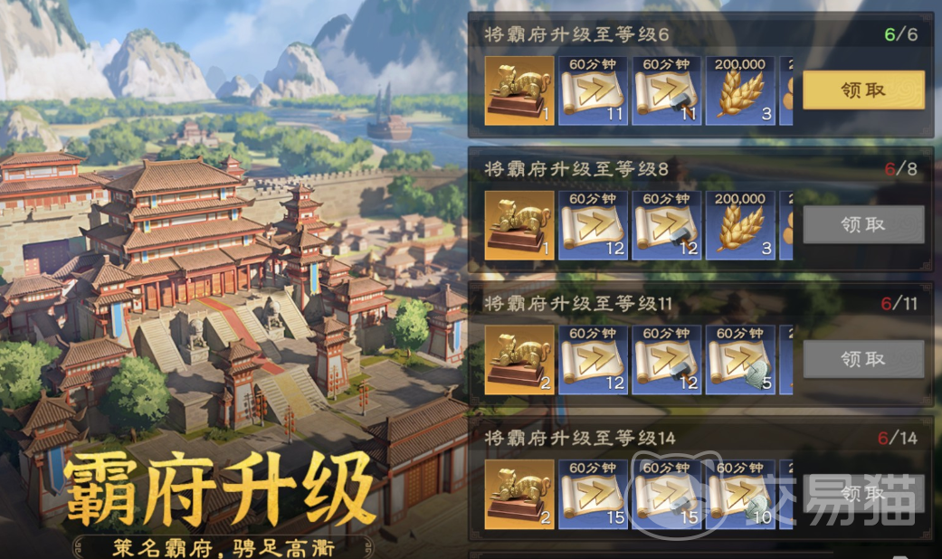 玩家需提升自身所在州府的霸府等级,每当达到指定等级节点时,即可领取对应阶段奖励,推动主城发展的同时获取资源回馈。