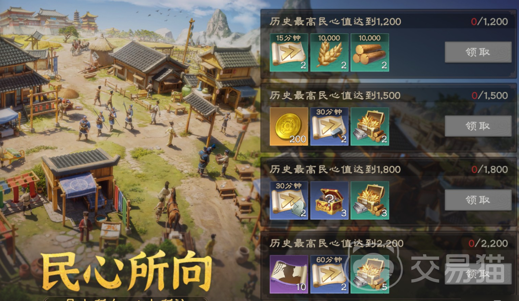 玩家可在出生地的民生区域建造各类设施,不同建筑可带来不同程度的民心值增长。当累计民心值达到指定数量时,即可领取阶段性奖励。