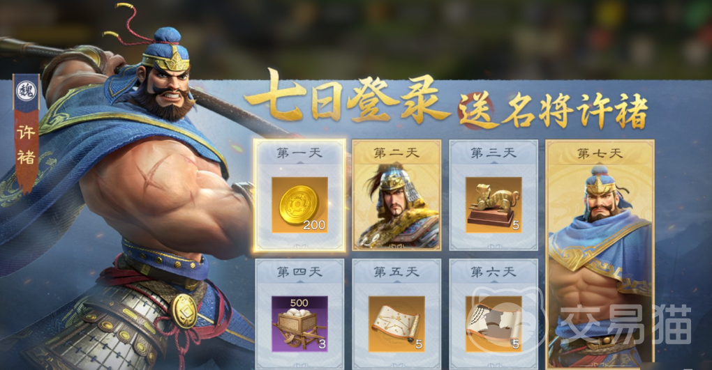 该活动持续七天,玩家每日登录即可领取对应奖励。特别的是,在第二天和第七天分别可获得橙将孙策与许褚,助力初期阵容搭建。