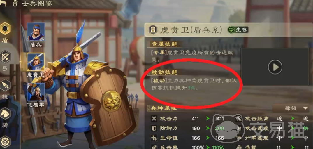 盾兵在游戏中属于防御型兵种的统称,其下细分多种具体兵种类型,主要包括飞熊军与虎贲军两大类,各自具备独特的技能机制与战术定位。