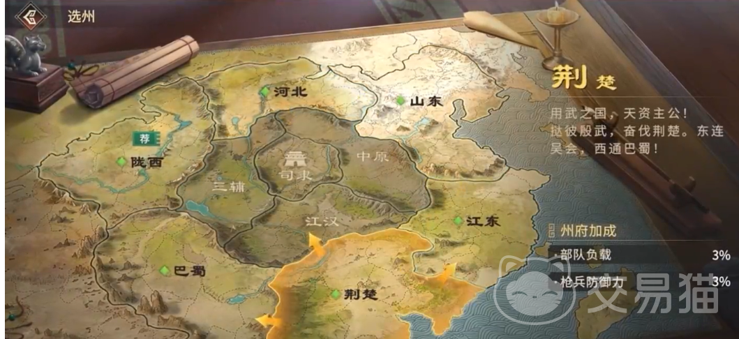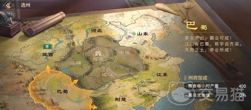目前游戏中开放了六个可供选择的出生地:河北、山东、荆楚、江东、陇西与巴蜀。每位玩家都应根据自身发展偏好来筛选最契合的起点区域,这就需要深入掌握每个州的核心优势。