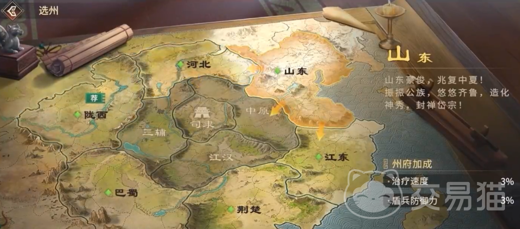 山东地形融合平原与丘陵特征,其核心优势体现在部队恢复与防御强化两方面。该州能加快3%的治疗速度,同时增强盾兵3%的防御力。前者缩短了战斗后休整周期,后者则显著提升了前排单位的承伤能力,对于频繁参与冲突或主打稳健防守策略的玩家来说极具吸引力。