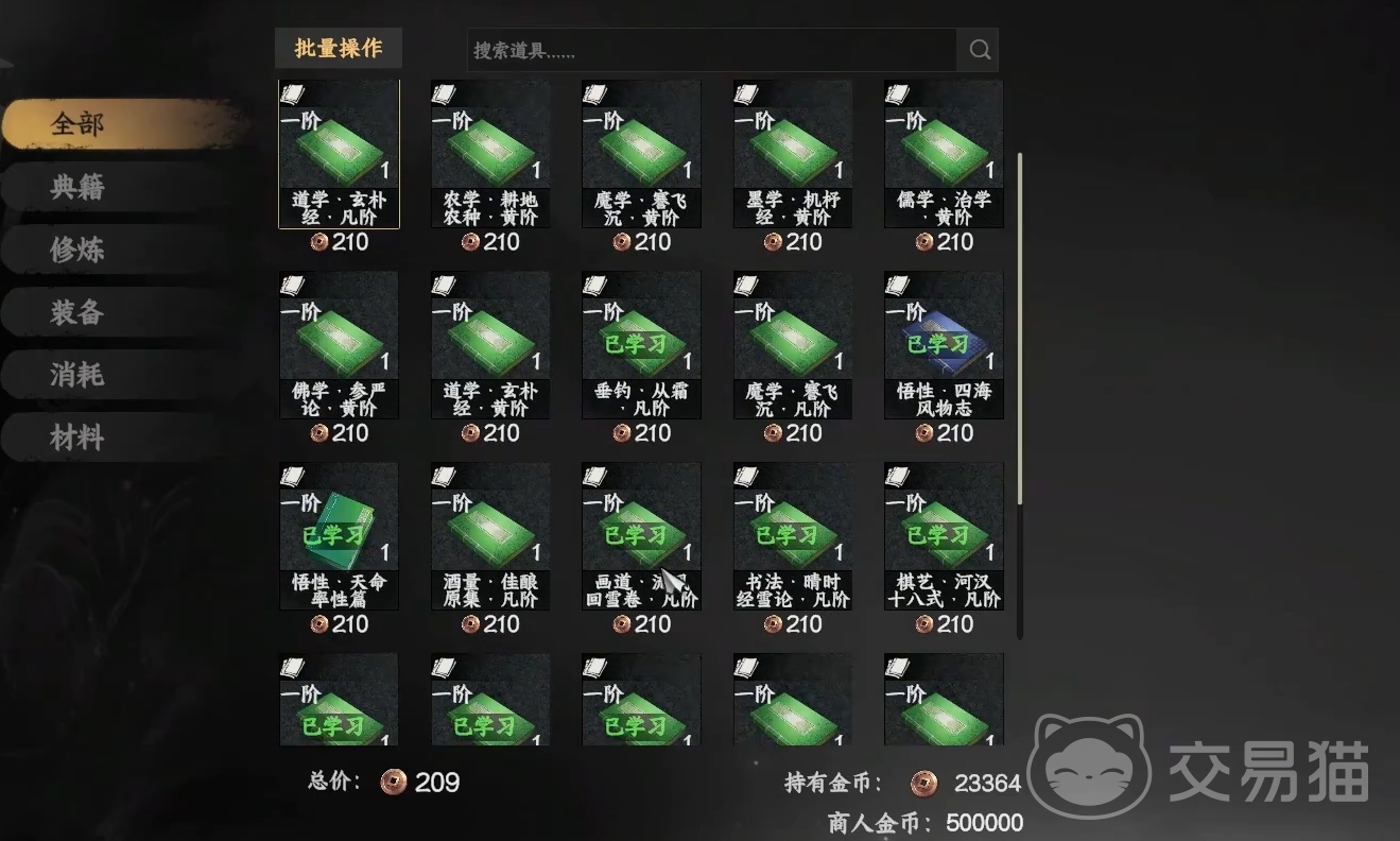 若尚未解锁万松书院或暂时无法进入,书画商则是更为便捷的选择。这类NPC分布在各大主城与村落之中,位置固定且交易内容稳定。他们定期供应包括道学在内的各类技能书籍,玩家只需携带足够铜钱即可持续采购。当货架上的道学相关书籍售罄后,可通过花费铜钱手动刷新商品列表,从而继续获取所需资源。此方法无门槛限制,操作灵活,尤其适合前期资金充裕但地图探索未完全展开的玩家使用。