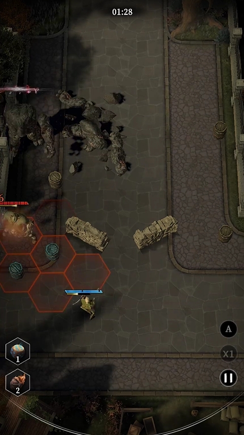 进入该关卡后,系统仅允许上阵一名角色,且该角色不具备任何攻击能力,也不能直接对怪物造成伤害。需要注意的是,若角色被怪物击败,则挑战失败。因此,玩家不能依赖角色输出,而必须借助地图上的两种关键道具:击退桶和爆炸桶。击退桶在激活后会召唤出一个石像单位,根据当前位置与怪物之间的相对角度,将其击飞一段距离;爆炸桶则会在触发后产生范围爆炸,对处于其影响区域内的敌人造成毁灭性伤害。