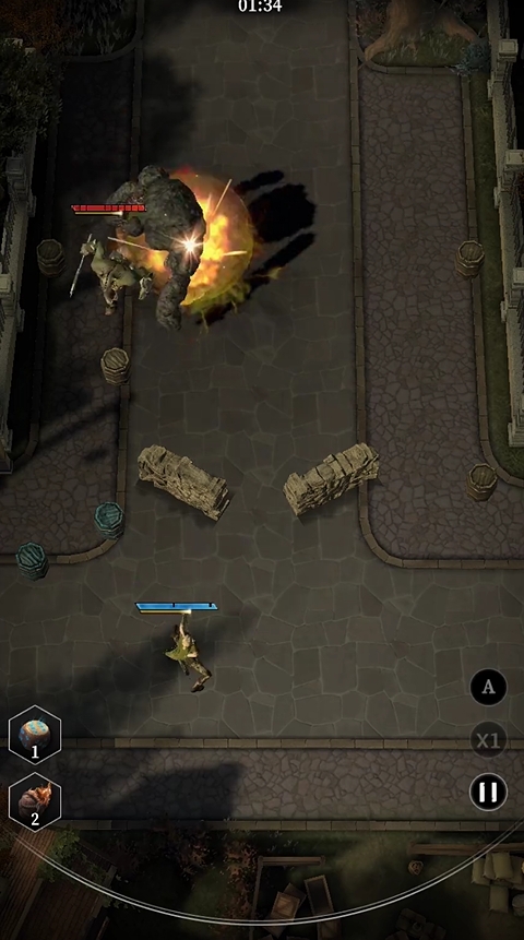 在怪物尚未恢复行动前,迅速点击两个爆炸桶,触发连锁爆炸,即可将其彻底消灭,完成关卡目标。整个过程的关键在于掌握击退桶的触发时机与顺序,通过多次位移控制,最终将敌人引导至爆炸范围内。只要操作得当,无需任何战斗输出也能轻松通关。