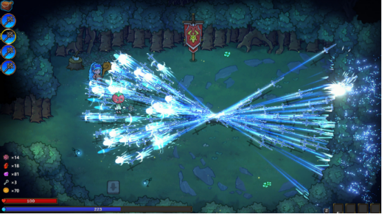 审判之剑的核心机制为召唤环绕型魔法剑阵,释放后会在目标周围形成一圈悬浮利刃,自动锁定附近敌人进行连续打击。当敌方单位接近时,剑阵会瞬间触发穿透攻击,造成高额伤害。一旦怪物触碰到由魔法剑构成的屏障,屏障即刻崩解并对范围内所有目标施加致命打击,实现范围清怪效果。