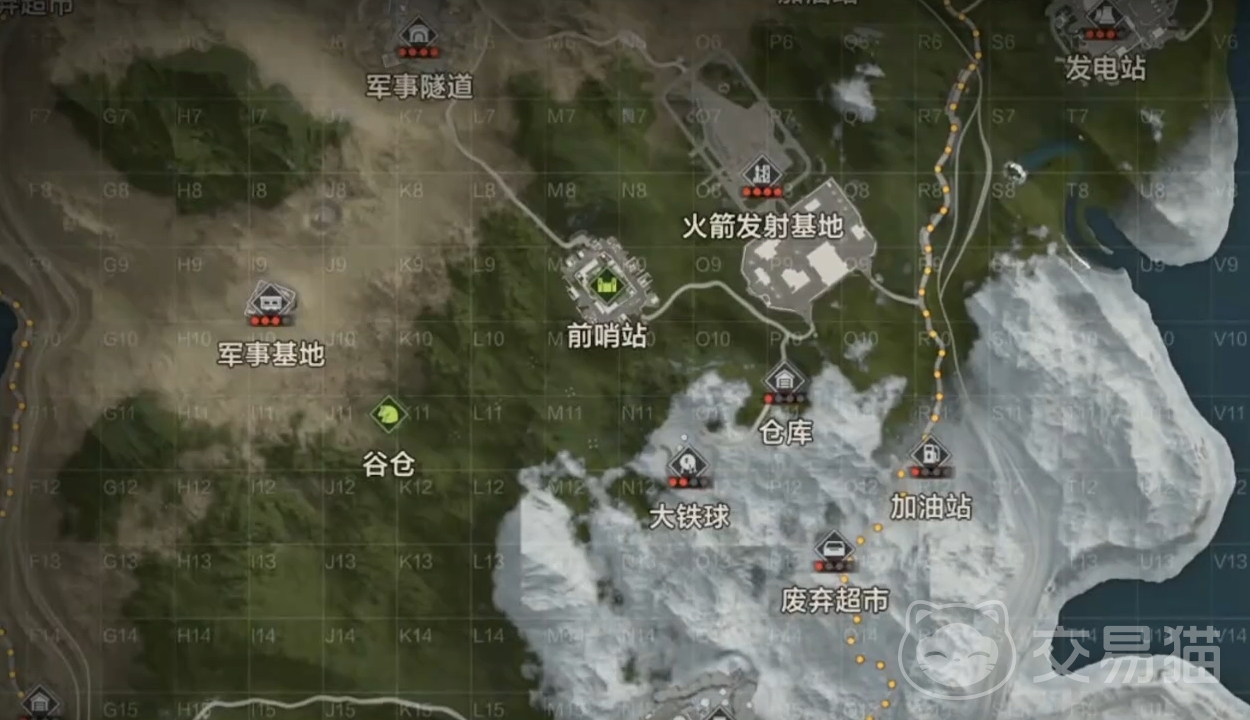 该游戏采用的是4*4km的大型开放世界地图,整体设计宛如一座被海洋环绕的孤立岛屿。地图内包含了沙滩、沙漠、雪山以及丛林四种主要地貌,每种地形不仅在视觉呈现上风格迥异,其所产出的资源类型也各不相同。部分稀有材料仅能在特定区域获取,因此了解地形分布对资源规划至关重要。各类建筑群散落于不同地貌之中,其名称会清晰标注在地图上,且下方配有红点标识,用以反映该区域资源的丰富程度——红点数量越多,代表可获取的物资越优质,出现高级图纸和稀有道具的概率也更高。
