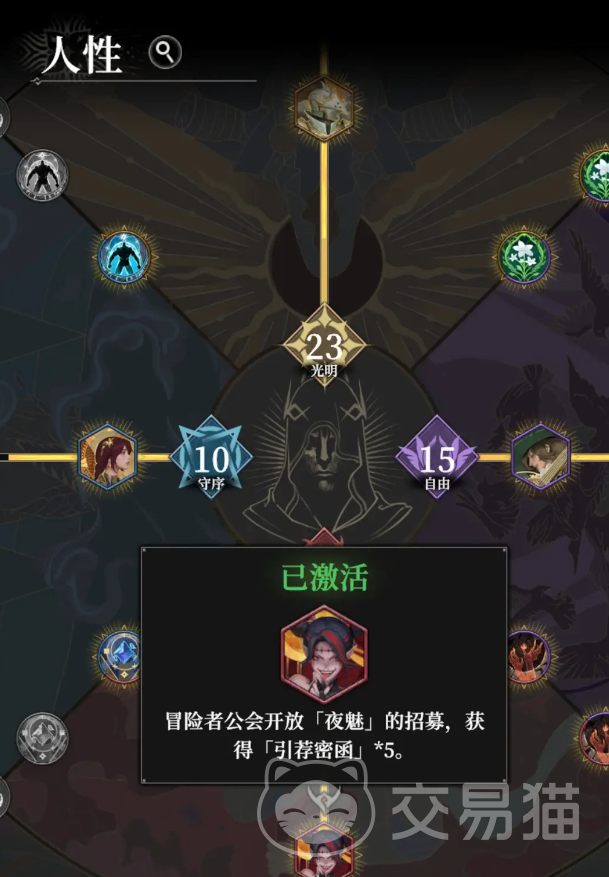 除了通过事件选项积累属性值外,完成特定任务或获取特殊物品也能带来人性加成。比如完成“水井里饥饿的魔鬼”这一任务后,可获得光明+1的奖励。若想查看当前各项人性的具体数值,可通过角色属性面板或前往审判庭进行确认。对于尚未明确路线规划的玩家,推荐按照自由4-混沌15-守序15-光明20-全20的分配路径推进,有助于顺利通关。