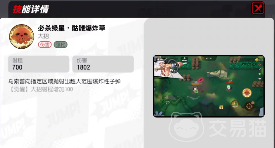 必杀技“骷髅爆炸草”拥有超广域打击范围,投射出带有爆炸属性的弹幕,对范围内所有敌方目标造成显著伤害。在团战中用于集火高密度区域,能迅速压低对方血量,为队友创造进攻机会。觉醒状态下,技能射程额外增加100,提升安全输出距离。