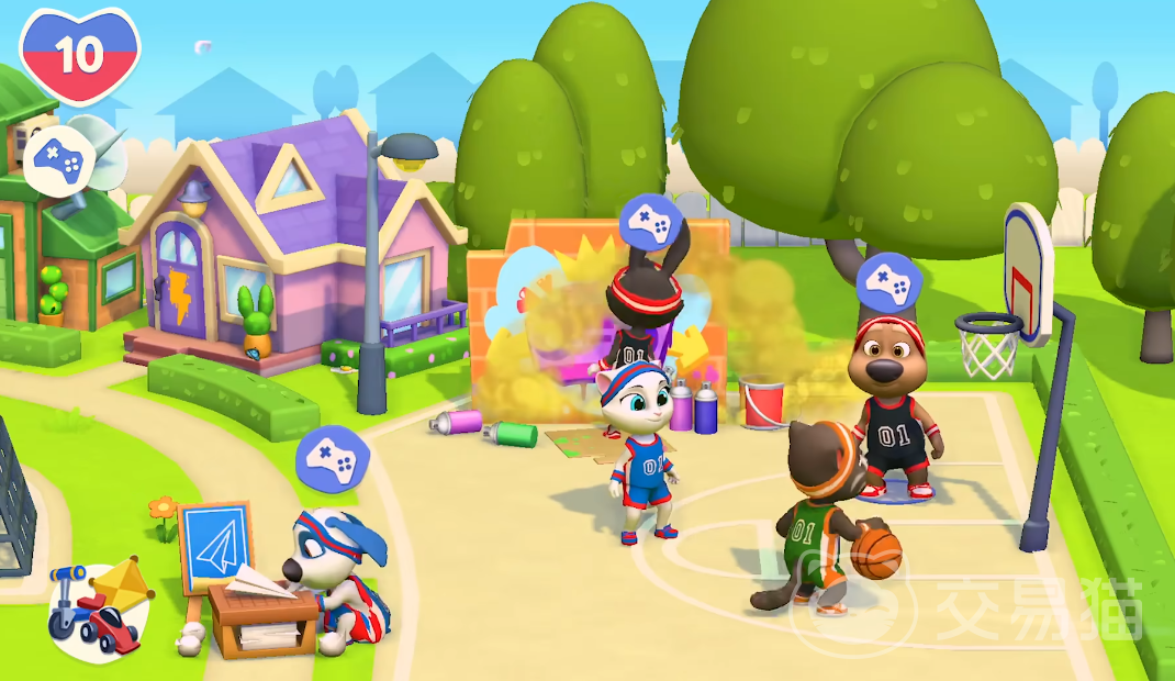 为了增强可玩性,《汤姆猫总动员2》新增了多种小游戏模块。主场景中的泳池区域不仅是角色休闲的热门地点,还支持点击互动,增添趣味。喜欢竞技元素的玩家可以参与篮球投篮挑战,而偏好操作感的则能选择割草机竞速或滑板闯关等模式,让日常养成不再单调。