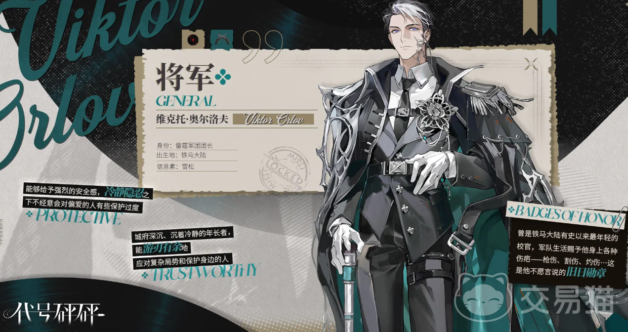 外观设计上,他身穿黑色军装并搭配深色斗篷,额前垂落的白色短发与冷峻的面部轮廓相得益彰,眼神锐利而克制,整体呈现出一种禁欲系的硬朗气质,极具视觉辨识度。