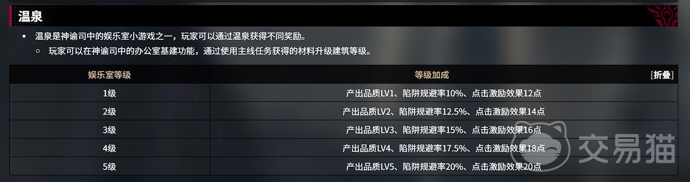 温泉系统的核心用途之一是提供持续性的资源产出。玩家每天进入温泉场景并停留满3分钟,即可领取完整奖励,包含本勒、星源晶魄碎片、初级自选材料礼盒以及小型星魂精髓等实用道具。奖励内容的品质直接受娱乐室等级影响,等级越高,资源数量与稀有度也相应提升。例如,1级温泉仅开放基础奖励,而升至5级后则额外获得20%陷阱规避率与点击激励效果,显著提高资源获取效率。建议优先将娱乐室建设至3级,以激活LV3档位奖励及15%的陷阱规避能力,为后续成长打下良好基础。