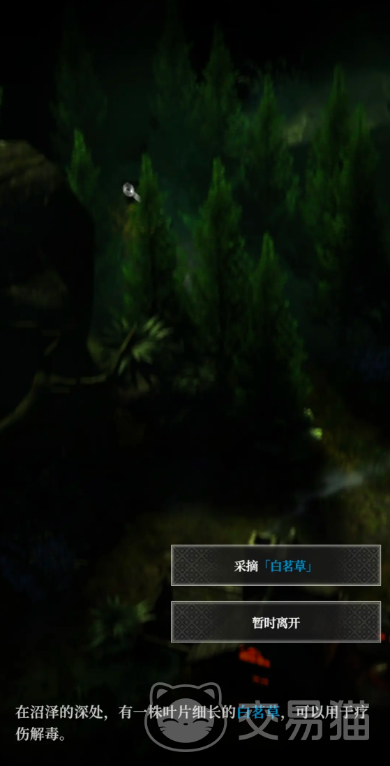 任务起始点位于地图中的旅店,与指定NPC对话后即可接取白茗草采集任务。接受任务后,打开地图传送至浮木沼泽。目标位置处于炼金术师小屋上方,地面上有一处微弱发光区域,但通常被茂密树木掩盖。若未第一时间发现光源,需围绕建筑多角度查看,确认具体方位。