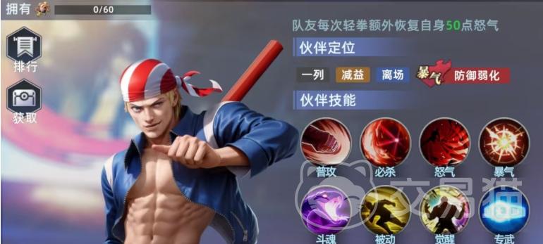 作为典型的进攻型格斗家,不知火舞在战斗初始阶段即可进入“曝气”状态,持续两回合。该状态下,她有30%概率为全体敌人附加“妩媚”状态,有效降低敌方防御力,从而为团队创造输出优势。她的怒气技“超必杀忍蜂”可锁定敌方血量最低的三名单位进行打击,在曝气期间还能额外提升15%最终伤害,非常适合收割残血目标。得益于斗魂系统提供的600点初始怒气,她能够在战斗初期迅速释放关键技能。