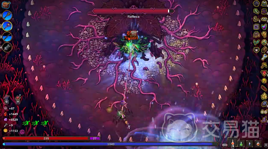 该BOSS对新手而言具有一定挑战性。当生命值降至一半以下时,会进入隐身状态,并释放密集弹幕攻击。但由于其被召唤单位克制——召唤物可无视其隐身效果并对飞行物起到格挡作用,搭配蝴蝶类追踪技能使用效果更佳。