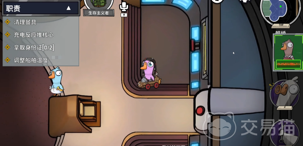 生存主义者的技能设计围绕资源感知与持续生存展开。该角色拥有敏锐的环境洞察力,能比其他大鹅更快发现地图中的隐藏物资点。例如在飞船场景中,某些隐蔽区域可能藏有修复核心设备所需的零件,生存主义者可以迅速定位;而在庄园地图里,存在可恢复体力或提升任务效率的药剂,他也能够优先察觉并获取,从而加快阵营整体进度。