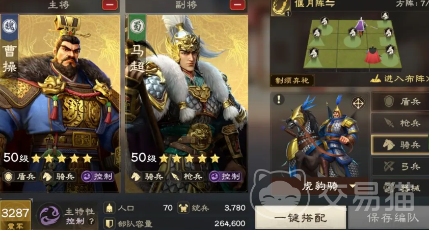 控制型骑兵以割须骑和魏骑为代表,主打通过技能限制敌方行动,降低对手整体输出效率。割须骑由曹操与马超组合而成,利用缴械、沉默及降怒等控制手段,可精准压制依赖技能释放的阵容核心。配合虎豹骑延长控制链的机制,形成持续性的压制节奏。此阵容在对抗技能爆发类队伍时表现尤为突出,在迎战蛮族或需要长时间作战的情境下,也能通过多段控制衔接显著减少己方伤亡。