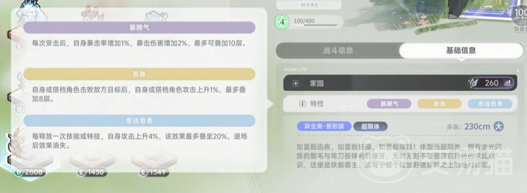 总体来看,铁鬃霸主凭借较高的基础攻击倍率、稳定的技能命中表现以及双属性适应性,在多种战斗场景中均有不错发挥。配合其提供的攻暴提升与元素抗性削弱,成为雷系主力输出角色的理想辅助搭档,具备一定的培养潜力。
