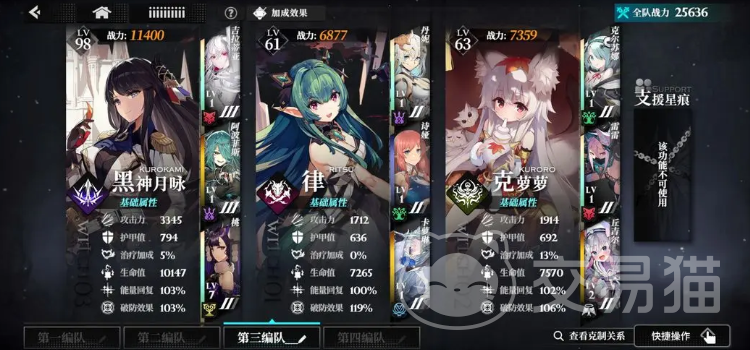 另一种更具爆发力的搭配是“直伤队”,安普莎在此类阵容中继续承担破甲职责,同时与安洁、黑神月咏形成联动。安洁的作用在于稳定恢复全队能量,保障输出角色的技能循环不断档;黑神则利用敌方护甲被削弱的状态打出高额爆发伤害。为了进一步优化该体系运转,耶塔、青蛙和雷雷等辅助角色也可加入,分别承担能量调度与控制干扰任务,确保战斗节奏流畅可控。