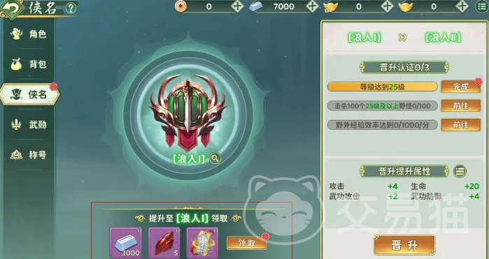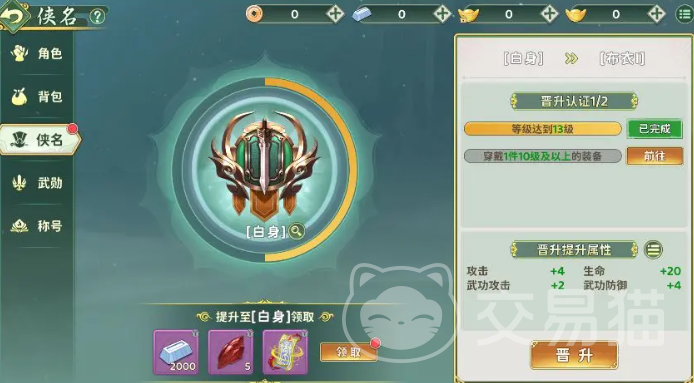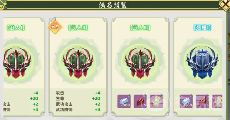 为了帮助玩家清晰规划成长路径,游戏内设有完整的侠名预览功能。点击界面中的侠名标识,即可查看后续所有阶段的奖励详情及已激活的属性增益,让每一次升级都目标明确、动力十足。