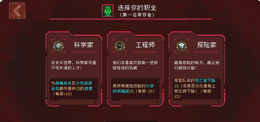 与此同时,游戏中提供了丰富的物资与工具系统,涵盖武器、防具、陷阱及功能性道具,帮助玩家建立战略优势。更有十余种职业天赋可供选择,每个职业拥有专属技能树,在建设或战斗中发挥关键作用,增强团队协作深度。
