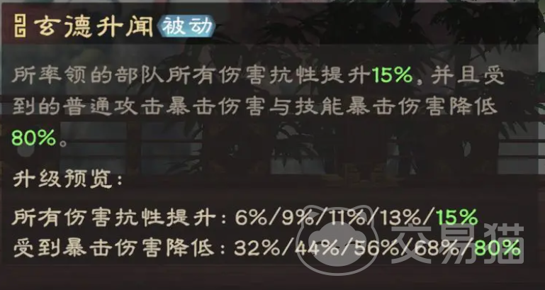 被动技能“玄德升闻”赋予全队伤害减免与暴击抗性双重加成,无论是面对依赖普攻输出的菜刀阵容,还是高爆发技能组合的法师体系,都能显著削弱对手的打击效率。更进一步,“王霸之略”带来的联动治疗机制,在己方武将释放技能时有概率触发群体恢复,与怒气技形成完整的治疗循环,极大提升了整体生命维持能力。觉醒后新增的反击减怒效果,使得敌方每次普通攻击都会受到怒气积攒速度降低的惩罚,从而延缓其技能释放节奏,形成战略层面的压制。