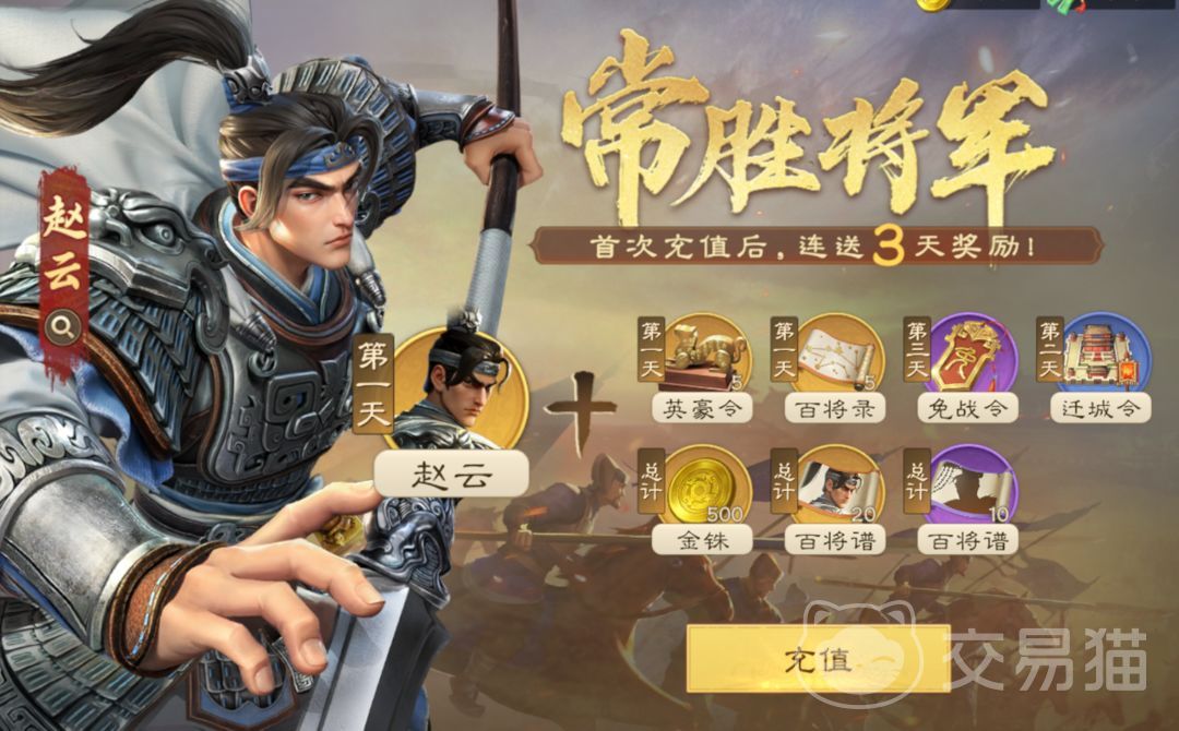 关于赵云的获取途径,方式较为便捷。完成首次充值任务即可直接获得该武将,同时还将附赠英豪令、百将录、百将谱等辅助道具。这些资源可用于加速赵云的培养进程或抽取其他强力将领,极大提升了前期发展效率。凭借高爆发和良好的适配性,赵云在游戏初期开荒阶段表现尤为突出,是新手阶段非常值得信赖的核心输出人选。