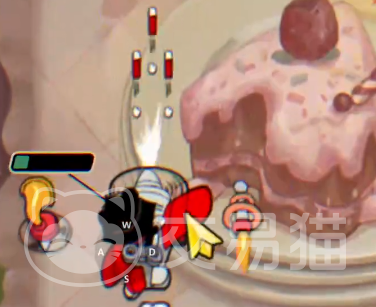 最后介绍的是1-5关的“奸笑猫”,体型明显大于此前遇到的对手,具备三种独立攻击方式。第一种为扇形发射黑色子弹,使用频率最高,虽轨迹清晰但射速极快;第二种是将自身蜷缩成球体进行高速冲撞;第三种则是随机抛掷瓶子,弹道无固定规律。