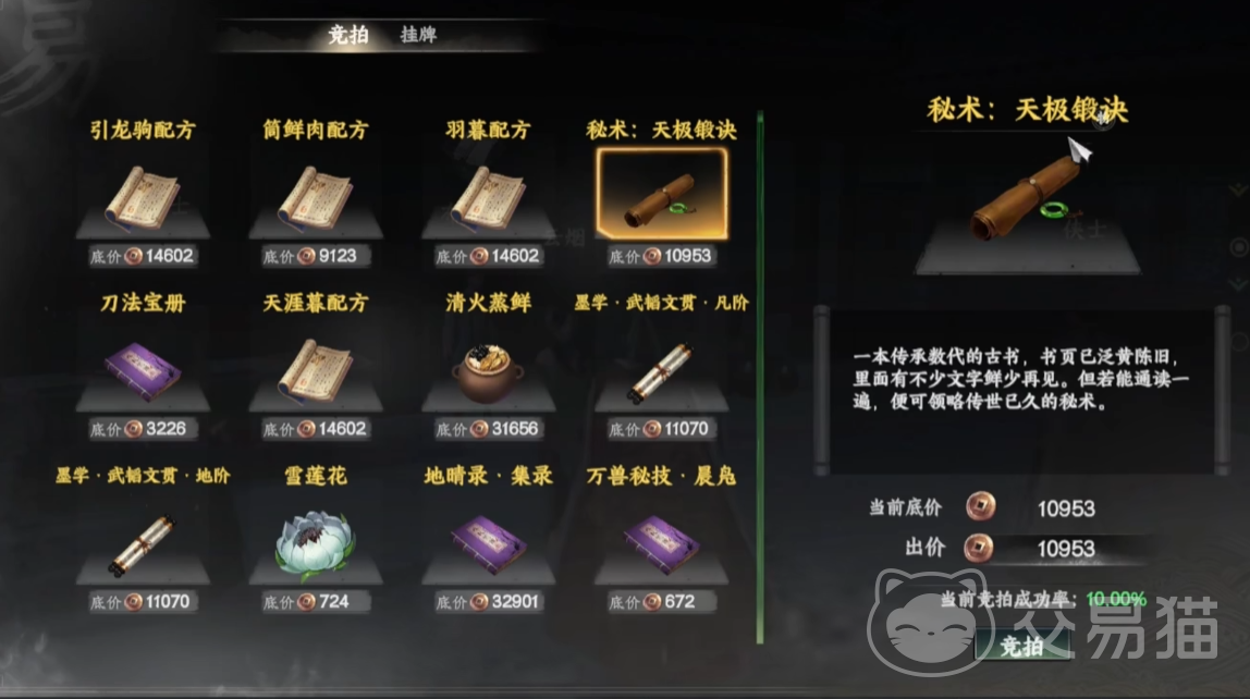 由于拍卖行物品繁多,玩家可能难以及时购得所需钥匙。在此情况下,推荐先以五毒经作为过渡选择。该功法可在云鹤村(坐标:1111,1477)处向一名行脚商购买,花费仅为5000文铜钱,性价比极高。集齐上述三本秘籍后,毒拳的基本成型条件即已满足,可初步发挥其持续输出能力。