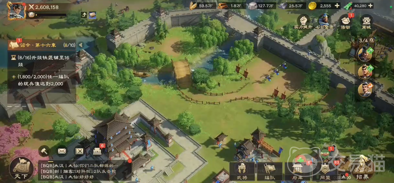 核心资源主要来源于耕地、采石场和伐木场,新人玩家在开局阶段即可领取丰厚的初始资源包,帮助快速启动发展进程。使用采集令能大幅缩短资源收集时间,实现高效囤积。讨伐蛮族是游戏中重要的成长路径之一,成功击败后不仅能提升军队军阶,还可收编敌方叛军为己所用,进一步壮大队伍。收编单位同时还能为武将提供经验加成,助力快速升级。若遇到关卡难以突破的情况,推荐优先升级校场或强化现有武将属性,以此突破瓶颈。