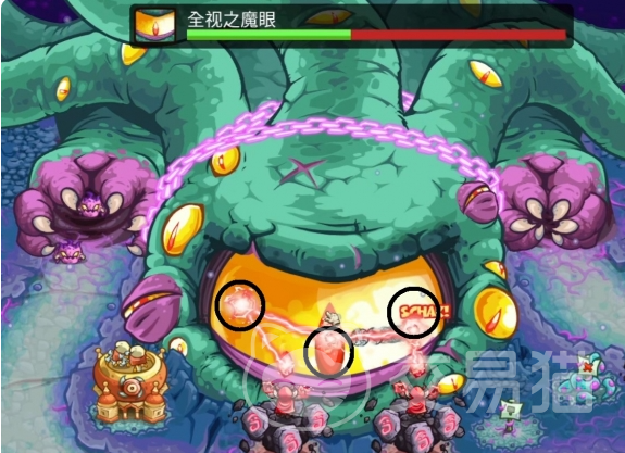 第一阶段无特殊技能,第二阶段每60秒会随机替换一座防御塔位置,玩家需及时应对以维持输出稳定性。第三阶段开始召唤三只辅助眼球,第四阶段则同时生成三只,后续阶段强度逐步提升。推荐核心阵容搭配:优先部署诡术魔导师,其一技能可实现连锁攻击,并覆盖三个受击判定点,在面对无魔法抗性的boss时伤害效率显著翻倍,且能确保目标被定身,便于集中火力。