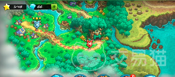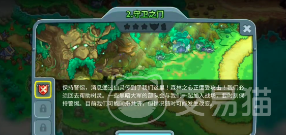 第二关:本关名为守卫之门,开局即拥有两名英雄。需在上下两个入口处分别建造骑士塔进行封锁。地图中段可能出现高速移动的割喉鼠,推荐使用英雄技能直接清除。后续登场的獠牙斗士具备高护甲特性,此时应布置法师塔进行针对性打击。此外,场景中的大树具有随机触发的伤害与减速效果,虽不稳定但可作为额外助力。建议将防御塔设于敌军必经之路,最大化其作战效能。