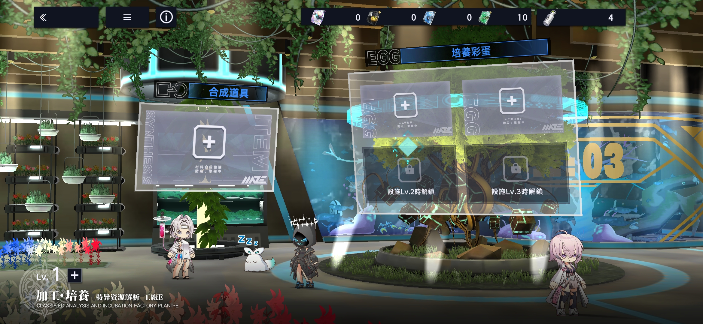 首先推荐优先升级中枢管理设施。该模块直接影响精神力的恢复速度与上限值,而精神力是进行艾儿照顾、实验操作以及加工·培养等关键行为的基础资源。提升中枢等级后,不仅能加快精神力积累,还能解锁FP兑换功能,获得比特鹦鹉币及其他稀有道具,为后续多种玩法奠定良好基础。
