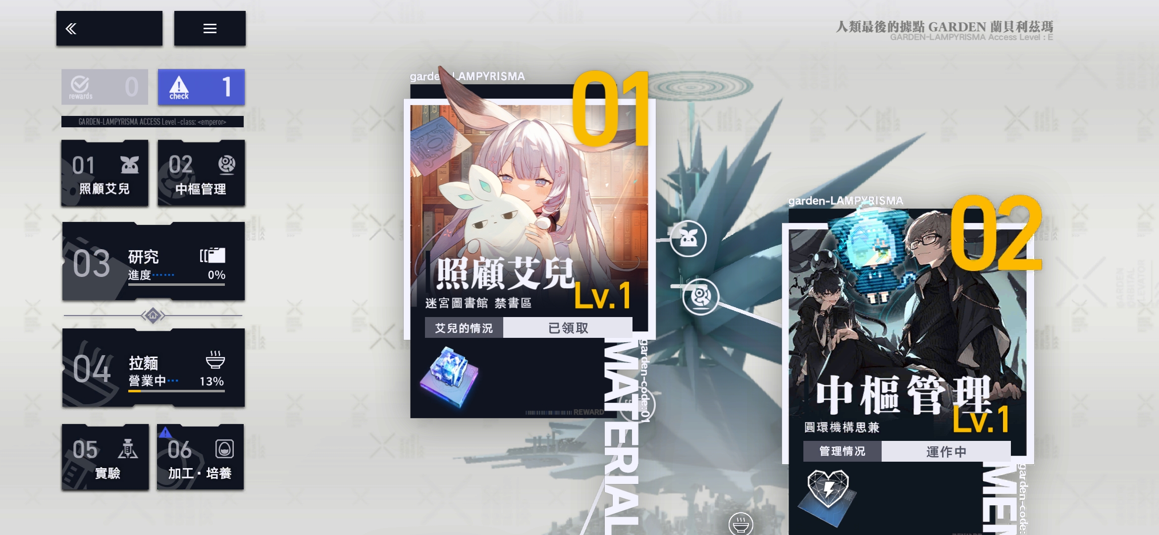 在升级中枢的同时,可同步推进对艾儿的照顾等级提升。通过喂食记忆不仅能够获取奖励物品,还能增强记忆等级,每周重置后还可重复领取收益。早期投资于艾儿的养成,能持续为拉面店经营和实验环节提供额外资源支持,形成稳定的辅助产出线。