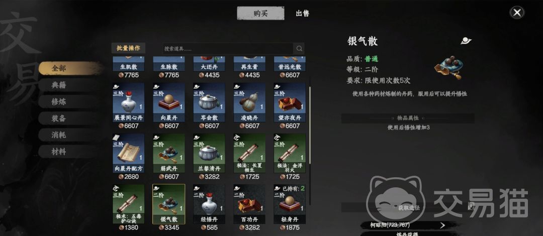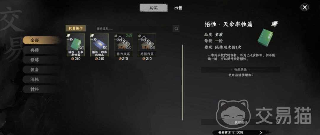 想要快速提高悟性,最直接的方式之一是通过购买相关书籍。玩家可前往特定地点寻找书画商人,购入如“悟性天命律性篇”这类典籍,使用后可为角色增加2.5星悟性。此外,NPC柯兆阳也提供有助于提升悟气的丹药,例如亦夜丹和银气散,每种均可提升7点悟气,适合需要短期突破的玩家。