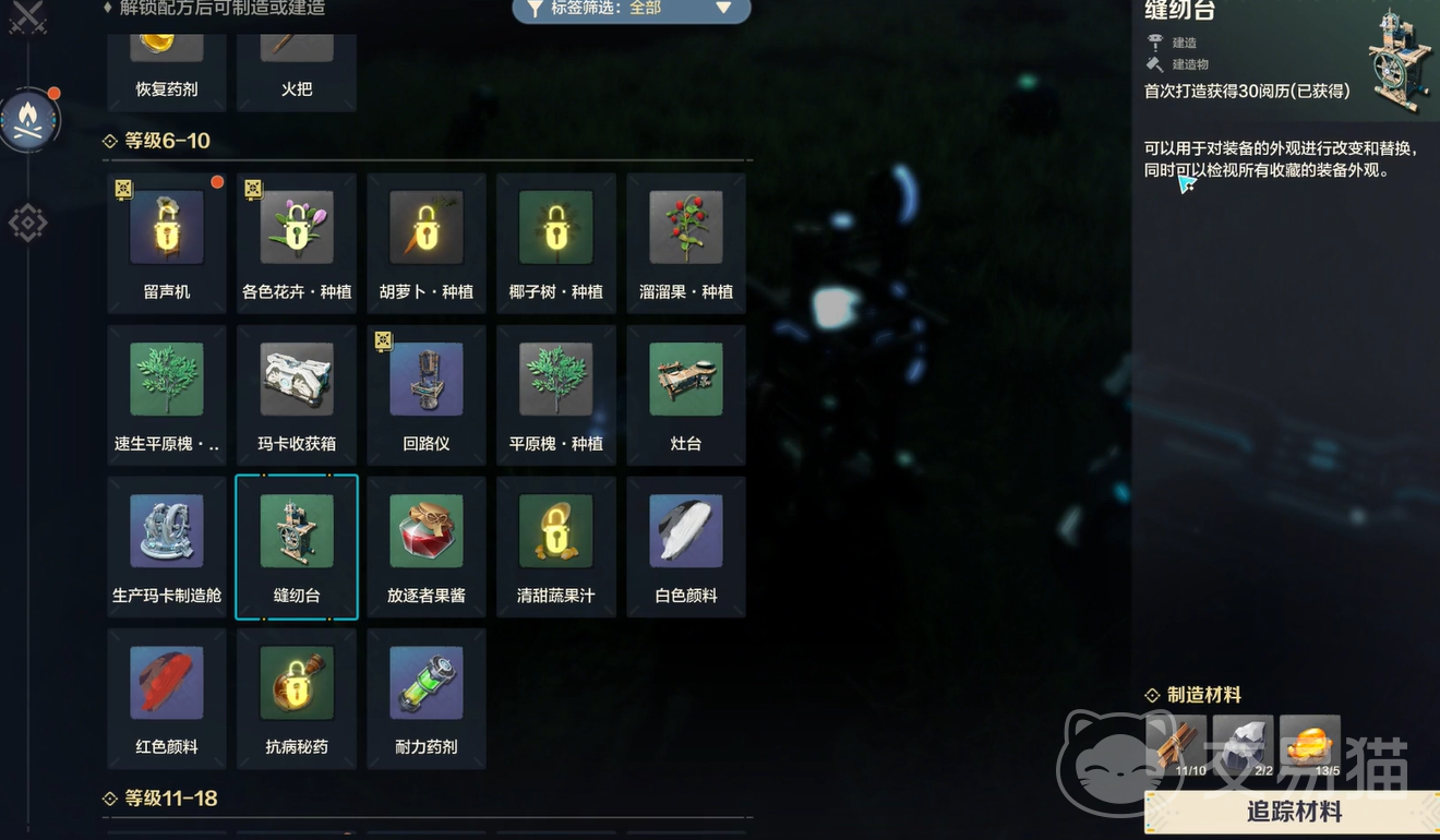 制作完成后,新获得的外观将存放在背包或缝纫台的已制作列表中,玩家可随时前往相关界面进行装备更换。部分高级或限定款式的外观需通过逐步解锁机制才能启用,同时其制作往往依赖稀有素材,因此需要投入更多精力进行探索与积累。此外,游戏中还设有装备台(工作台),主要用于制造武器、修理工具和强化装备,而缝纫台则专注于外观系统的自由搭配,两者分工明确。