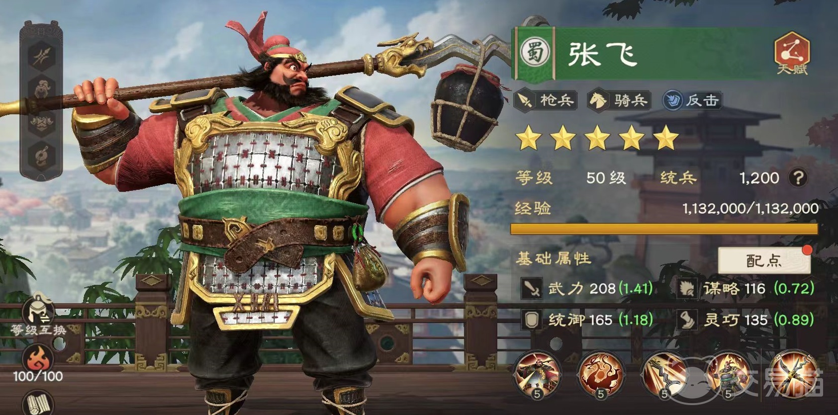 张飞是典型的反击流前排核心,具备1.41的武力成长值和1.18的统御成长值,这使得他在输出与生存之间取得了良好平衡。他不仅能通过主动技能打出可观伤害,还能依靠被动频繁触发反击与反震效果,兼具承伤、反打与团队治疗能力。尤其在中后期战斗中,面对高频率攻击的对手时,张飞的表现尤为突出,成为反击体系中不可或缺的关键角色。