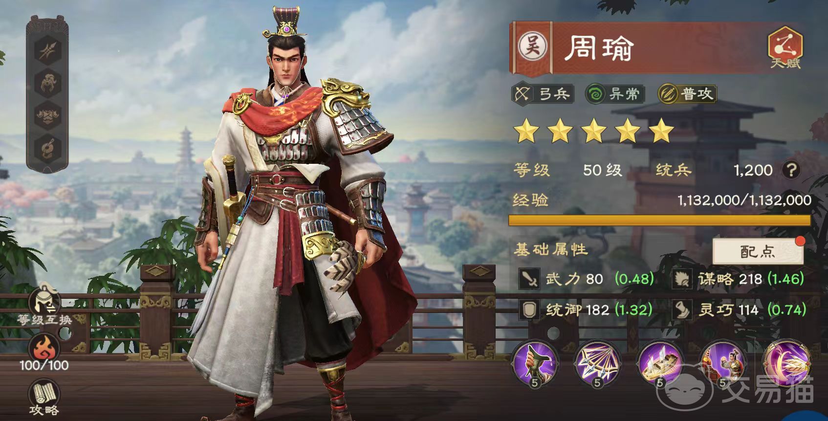 从基础属性来看,周瑜拥有1.46的谋略成长值,这一数值在弓兵系武将中处于顶尖水平,使其能够通过主动技能打出高额的谋略伤害。同时,高谋略也显著增强了其附加灼烧状态的持续伤害能力。此外,他具备1.32的统御成长,能够在长时间作战中有效维持兵力健康,提升整体生存能力。兵种方面,周瑜仅可统领弓兵单位,因此在阵容构建时需围绕其他弓兵武将进行搭配,限制了部分组合可能性。