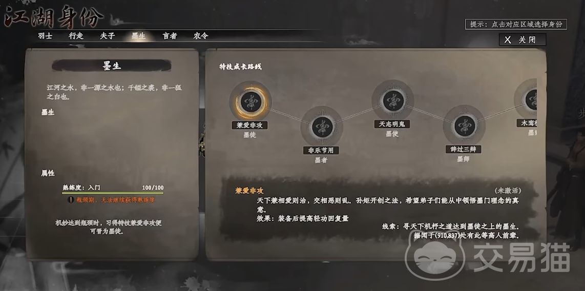 加入墨门之后,角色的成长体系围绕门派好感度与核心能力双线推进。晋升内门弟子需要同时满足门派声望积累以及枪棒能力和墨学知识的达标。一旦达成条件,不仅能解锁更多高级资源获取权限,还能参与更高层次的门派活动。随着好感度不断提升,若个人实力同步跟上,后续还将触发关门弟子乃至亲传弟子的专属晋升任务,进一步深化玩家在门派中的地位与影响力。