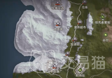距离灯塔不远的位置设有一座废弃木屋,被标记为一级遗迹,每日稳定刷新木材、石头及布料等基础材料,且无任何战斗风险,是前期不可或缺的补给来源。这些资源可用于制作初期所需工具与简易装备。地图左下角设有垃圾场,呈现为开放式废墟结构,散布着破损家具与各类废弃物,均可通过分解机进行再利用。场地周围的铁丝网也可采集并用于基地防御建设,增强安全性。垃圾场内共设有11个物资箱和一台分解机,每日刷新基础资源与金属零件,支持玩家制造基础机械设备。