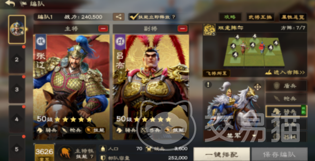 赵云+公孙瓒极限暴击队:此阵容专注于技能与普攻双重暴击下的瞬间输出爆发。虽然赵云与公孙瓒之间无专属羁绊,但公孙瓒自带提升全队暴击率及技能伤害的能力,完美适配赵云多段攻击的输出模式。兵种选择禁军最为理想,其附带的击飞效果与暴击加成能进一步放大输出优势。阵法方面,双龙阵或七星阵均可显著提升暴击收益,尤其契合赵云七次攻击判定的机制特点。作为紫卡武将,公孙瓒培养成本较低,觉醒难度小,非常适合资源有限的新手阶段过渡使用。