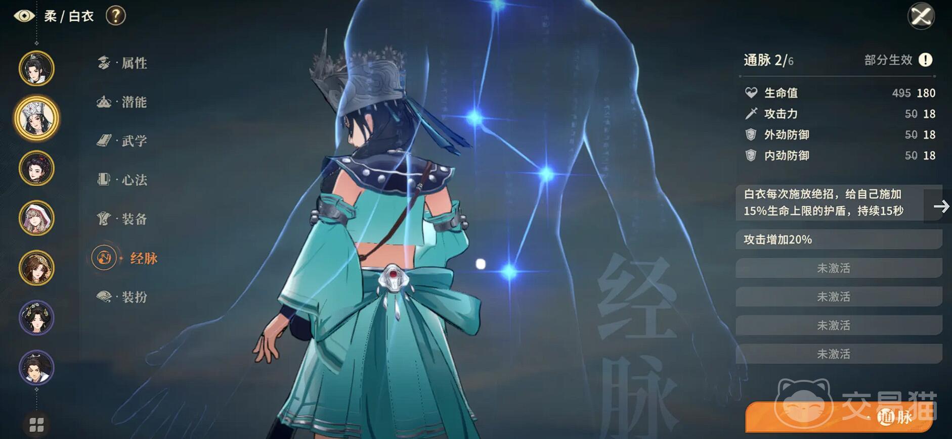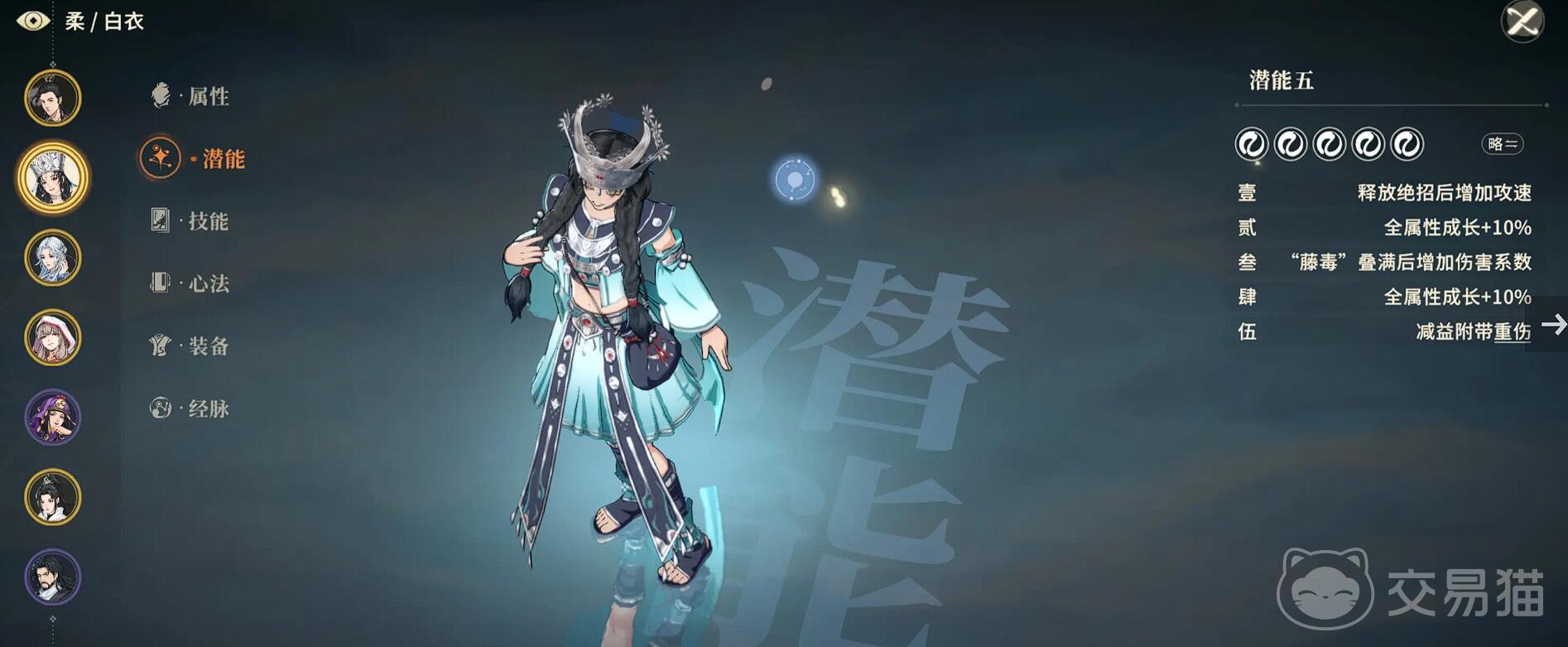 心法必选百毒心经,提供25%独立毒伤加成,获取途径为沙匪营地隐藏BOSS顺奕(需在井中触发战斗)掉落。若未获得该心法,白衣的整体输出能力将下降约50%,故其为角色成型的关键所在。