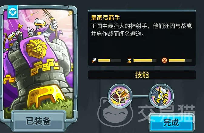 首先登场的是弓箭手塔,这是玩家最早接触的防御建筑之一,在首关即可建造。其整体性能均衡,即便进入游戏后期依然具备不俗的实战能力。建造成本较低,适合前期快速布局。它拥有两个主动技能:其一是“破甲射击”,可一次性发射三支强化箭矢,每发造成约38点物理伤害,并无视目标20%的护甲值,对高防御单位尤为有效;其二是“战鹰召唤”,能派遣一只飞行单位协助攻击,尽管单次伤害有限,但在牵制敌人方面有一定辅助作用。