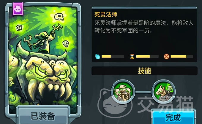 死灵塔作为系列经典回归单位,需通过第八关后方可解锁。其独特机制在于攻击时给敌人叠加标记,若在标记持续期间击杀目标,则有几率将其转化为己方骷髅兵,实现兵力补充。一技能为“诅咒图腾”,放置一个持续10秒的图腾,兼具降低敌方战斗力与提升己方骷髅单位50%攻击力的双重效果;二技能“亡灵冲锋”可召唤一名亡灵骑士向前突进,对路径上的每个敌人都造成60点真实伤害,具备出色的斩杀能力。