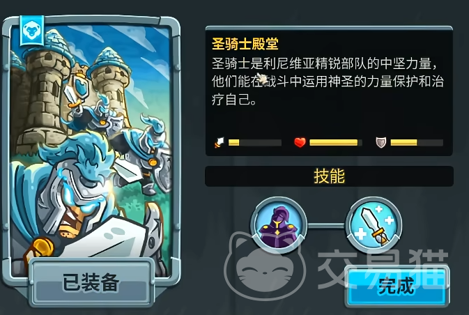 接下来是圣骑士殿堂,属于典型的近战阻拦型防御塔,早在第二关便会自动解锁,是前中期阵容中的常驻选择。该塔会持续生成三名士兵阻挡敌军推进,单位血量较高但攻击力偏弱,主要用于延缓敌方节奏。其第一个技能为“老兵激励”,使其中一名士兵晋升为老将,为周围友军提供20%的伤害加成光环,此增益同样适用于英雄单位;第二个技能名为“祷告”,当圣骑士生命值低于25%时自动触发,进入4秒无敌状态并每秒恢复12点生命值,冷却时间较长,需谨慎规划使用时机。