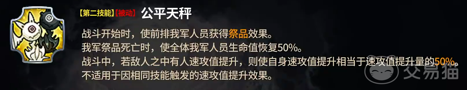 伊杰拉的核心在于其被动技能“公平天秤”,该技能在战斗初始阶段便为前排我方单位施加“祭品效果”。当这些单位阵亡时,全队将恢复50%的生命值。这种以牺牲换取集体生存的设计,打破了传统治疗机制的局限,赋予战斗更多变数与策略深度。通过合理布局前排角色,玩家可利用这一机制实现反败为胜的关键逆转。