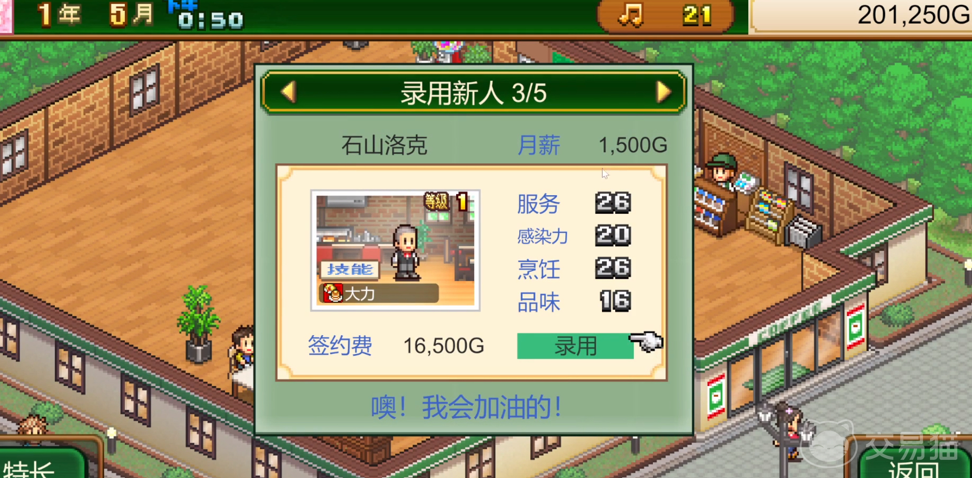 游戏初期会因人手不足自动开启招聘系统,每次启动需支付300G费用,并提供三位应聘者供选择。完成一轮招聘后,系统将进入1至2个游戏日的冷却时间。若当前岗位已满员,新录用的员工将暂时进入待命区等待调度。因此,通过定期组织招聘活动是实现人员扩编的核心方式。